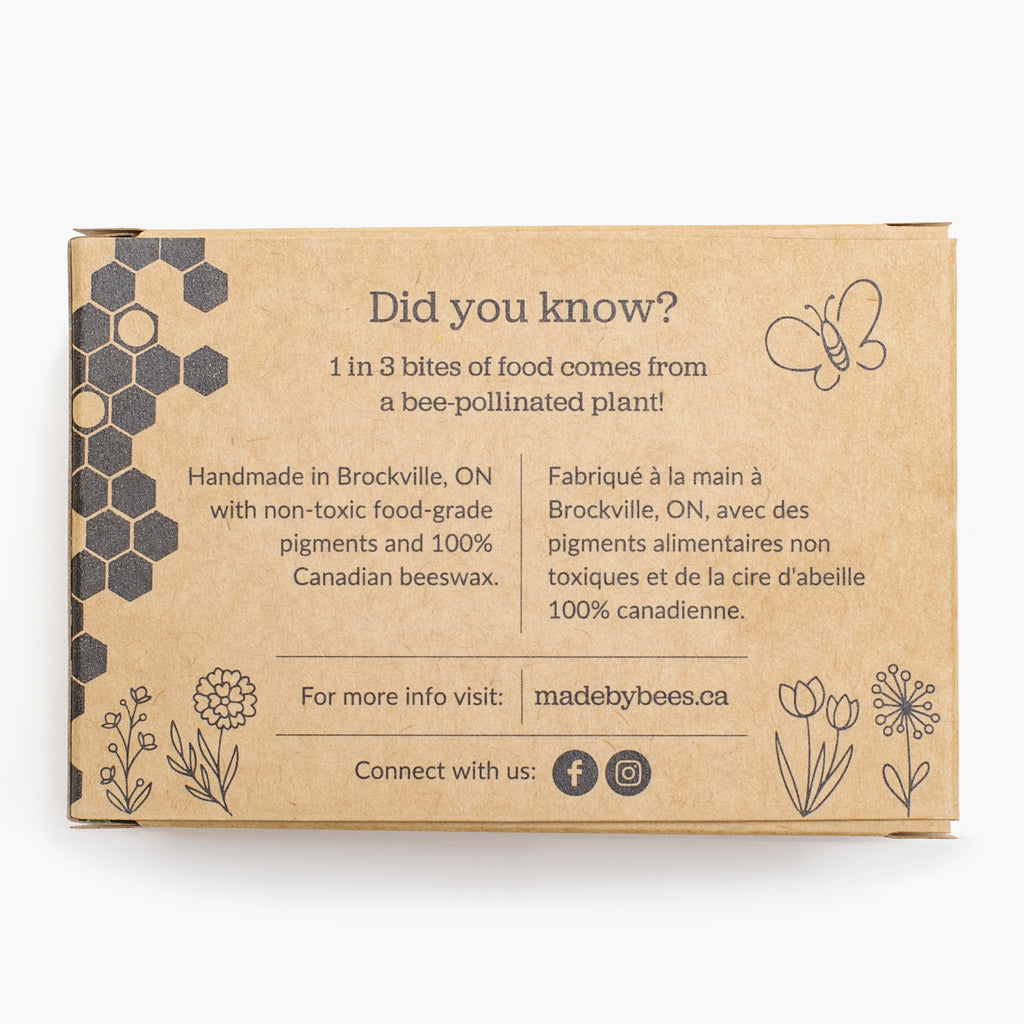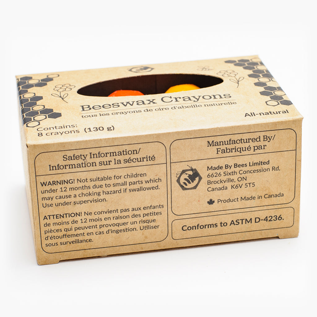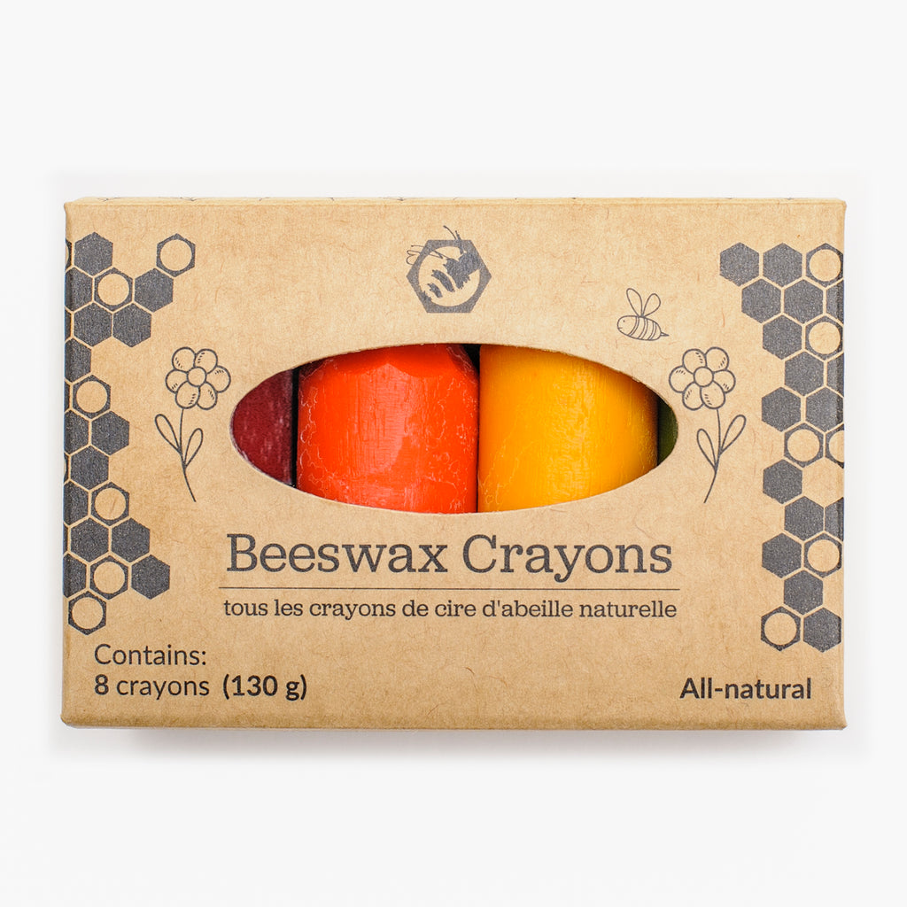Our Beeswax Crayons are made using 100% Canadian beeswax, including food-grade pigments, to produce 8 pretty colours. Our crayons are safe for children of all ages and are less harmful than traditional paraffin-based crayons.
