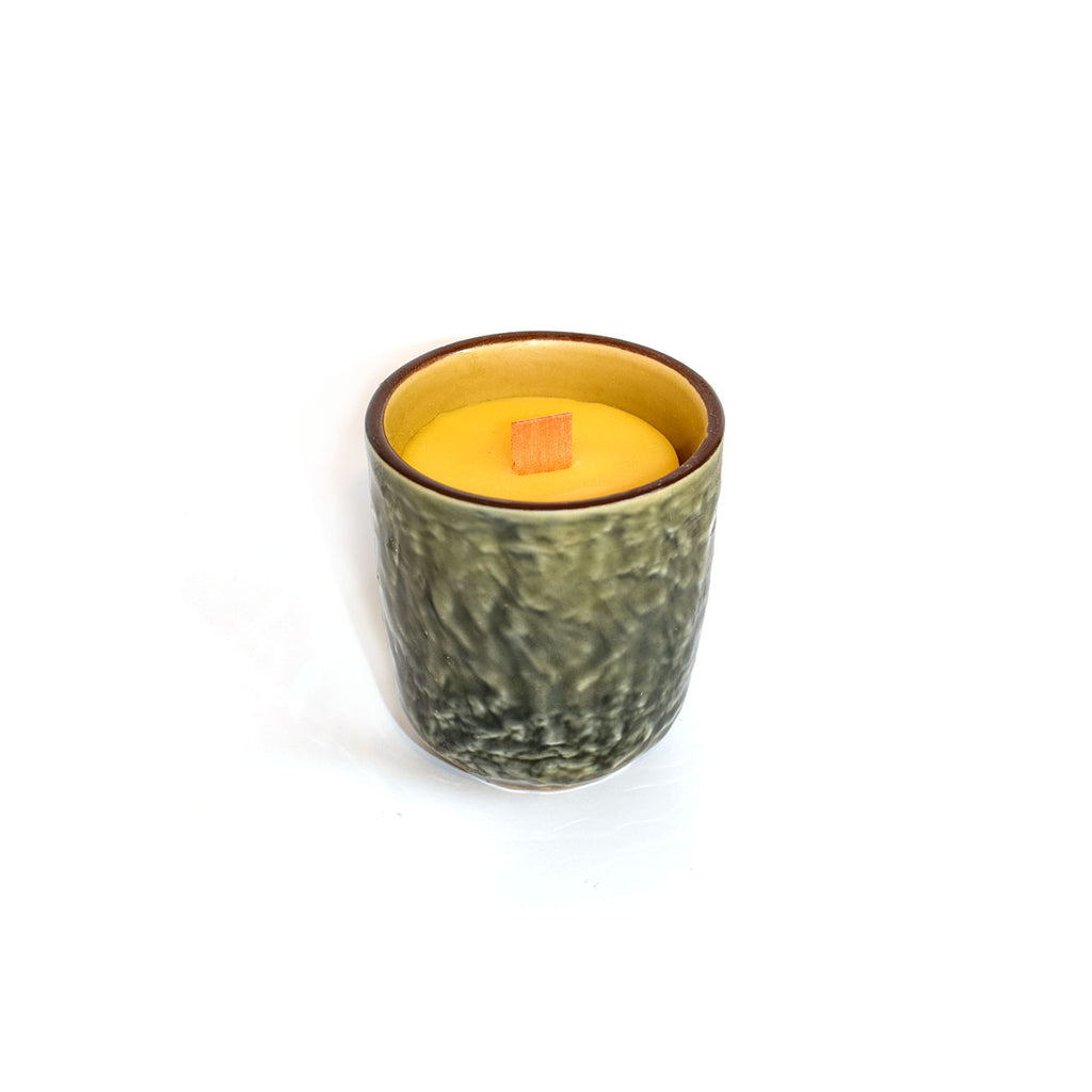 Beautiful beeswax candles in a vintage vessel with a natural wood wick. Each vessel is hand-chosen and unique.